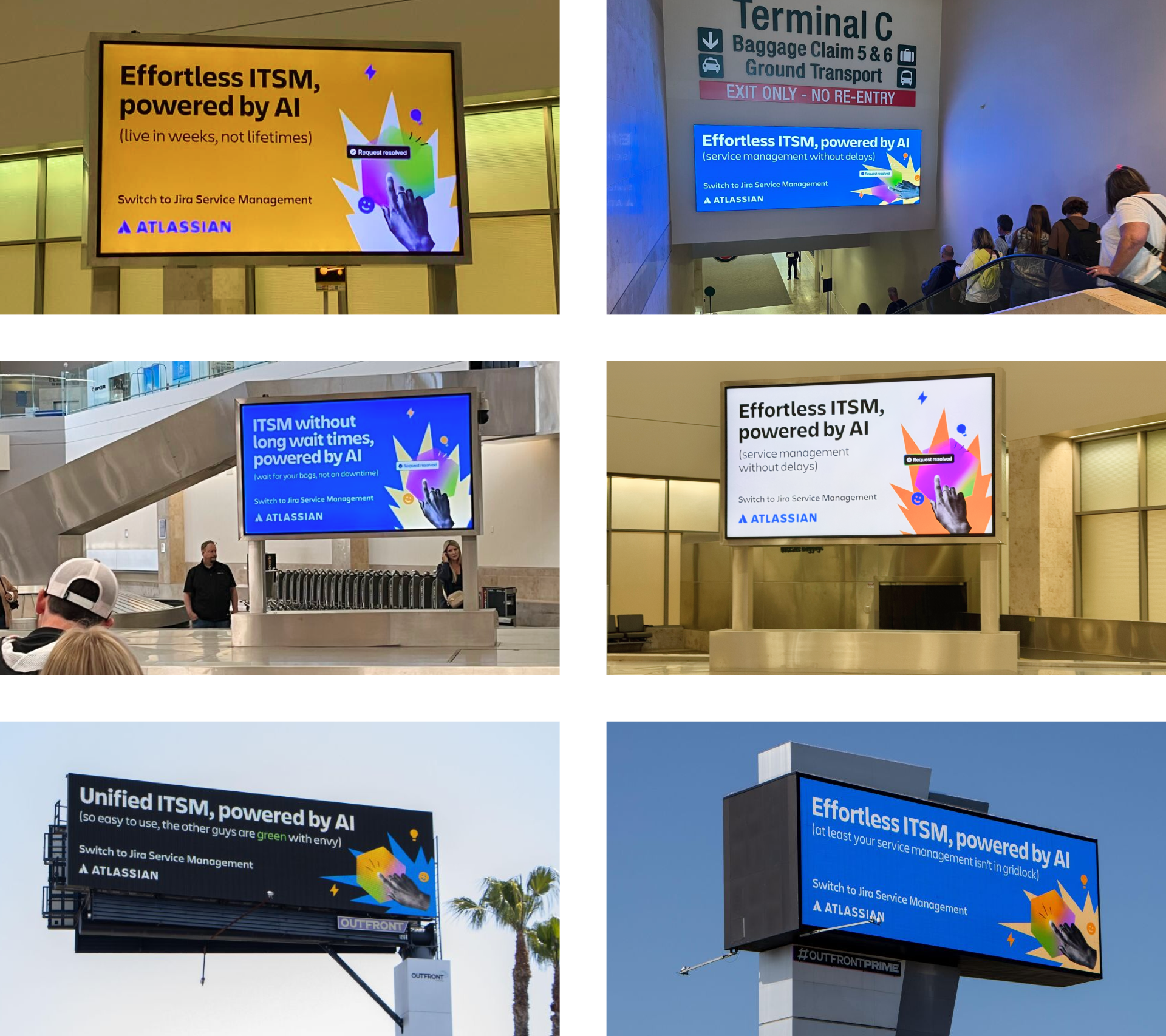 Atlassian Design Team was tasked with creating an out of home digital campaign to compel IT and service management professionals in the LA area to switch to Jira Service Management. Targeted placements ran along key commuter ways around LA and on terminal signage within LAX.