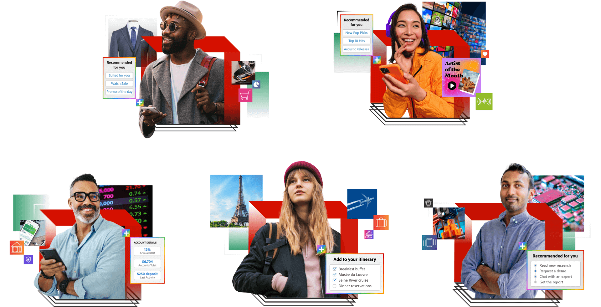 Personalization at Scale was an all new solution aimed at showing Adobe customers how to use Experience Cloud products to incorporate personalization in their marketing. This initiative involved creating brand new principal artwork, landing page visuals, and supplementary graphics to be featured on business.adobe.com and various marketing materials.